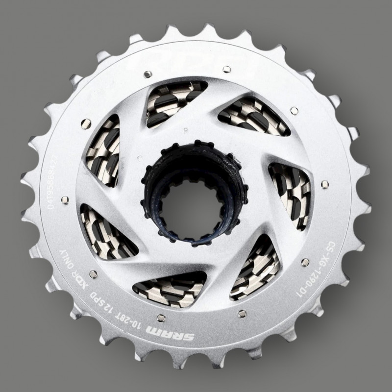 La cassette SRAM RED XG-1290 D1 AXS 12 vitesses – 10-28 est la plus légère et la plus performante de la gamme route SRAM. Conçue pour les transmissions électroniques AXS 12 vitesses, elle offre des passages de vitesses ultra-fluides, rapides et silencieux, même sous charge. Son design X-DOME™ monobloc usiné CNC assure une rigidité exceptionnelle et une longévité supérieure, tout en réduisant le poids au minimum. Idéale pour les cyclistes exigeants à la recherche de rendement et de précision absolue.