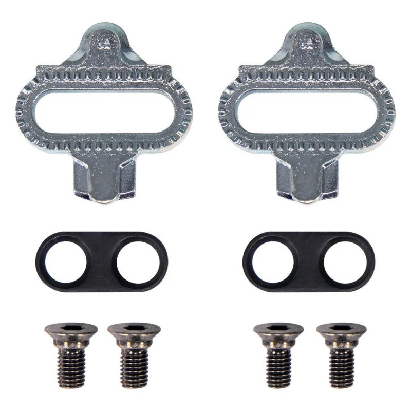 Cales SPD polyvalentes à déclenchement multidirectionnel, offrant un enclenchement sécurisé et un déchaussage facilité, idéales pour le VTT, le gravel, le bikepacking, le spinning (RPM) ou le vélo urbain avec nombreux arrêts/redémarrages.