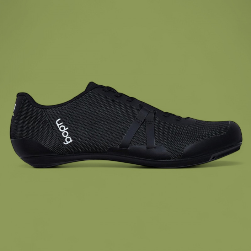 La UDOG Tensione Pure Black est une chaussure route innovante alliant confort, légèreté (≈ 245 g en taille 42) et maintien exceptionnel grâce à son système Tension Wrap™. Avec une tige entièrement en mesh 3D sans couture, une semelle composite carbone‑nylon rigide (indice 7), elle offre un bon transfert de puissance, ventilation et style minimaliste.