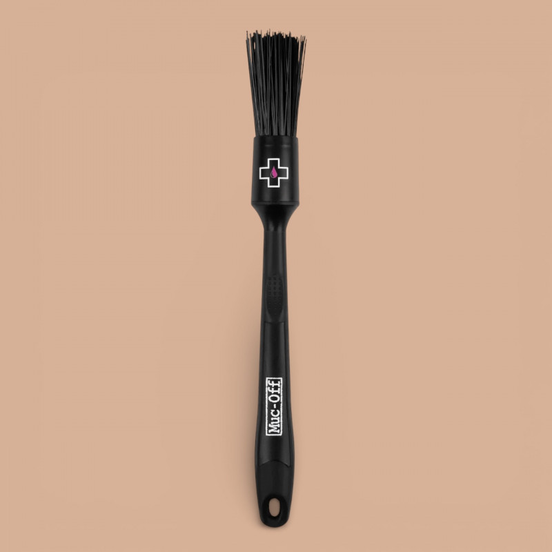 La Muc-Off Drivetrain Detailing Brush est une brosse spécialisée pour la transmission vélo, développée pour accéder précisément aux zones difficiles autour de la chaîne, des plateaux, des galets de dérailleur et de la cassette. Grâce à une conception étroite et des poils en nylon haute densité, elle permet de déloger efficacement la saleté et les résidus de lubrifiant dans les interstices les plus serrés, sans endommager les surfaces sensibles. L’ergonomie du manche assure une prise ferme et un contrôle optimal lors des opérations de nettoyage minutieux, même après des sorties exposées à la boue ou à la poussière.