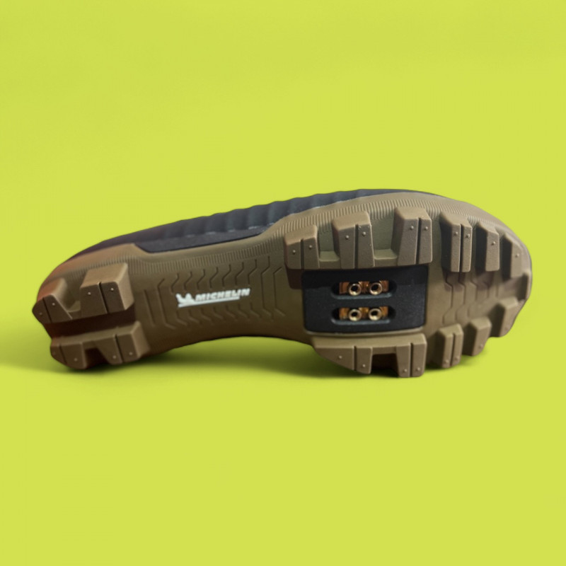 Des renforts sur les flancs dits "pare-pierres" t'assures d'avoir quelques chose de robuste au pied. Semelle externe Michelin pour avoir du grip si tu poses pied à terre.