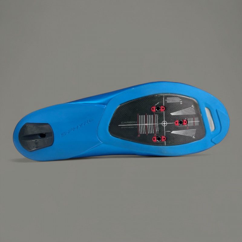 La Shimano S‑Phyre SH‑RC901 “bleu” est une chaussure de route haut de gamme, légère (~243 g en taille 42), avec semelle carbone très rigide (indice 12/12), fermeture micrométrique douce via deux molettes BOA IP1, talon externe anti‑torsion et tige respirante en microfibre, offrant maintien, performance et confort de niveau pro.