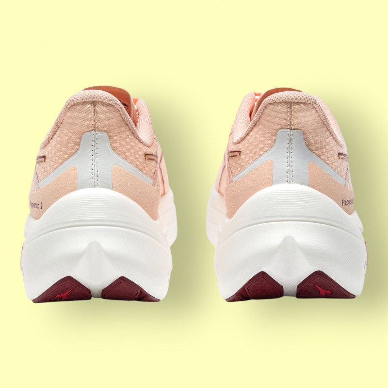 La DIADORA Frequenza 2 W – Scallop Shell / Winery est une chaussure de running pour femme conçue pour offrir vitesse, réactivité et confort sur toutes les distances. Grâce à la nouvelle mousse DD Anima 2.0, elle procure un amorti ultra-léger, un retour d’énergie puissant et une transition fluide à chaque foulée. Parfaite pour les séances rapides, les entraînements soutenus ou les courses sur route, elle combine performance et élégance féminine.